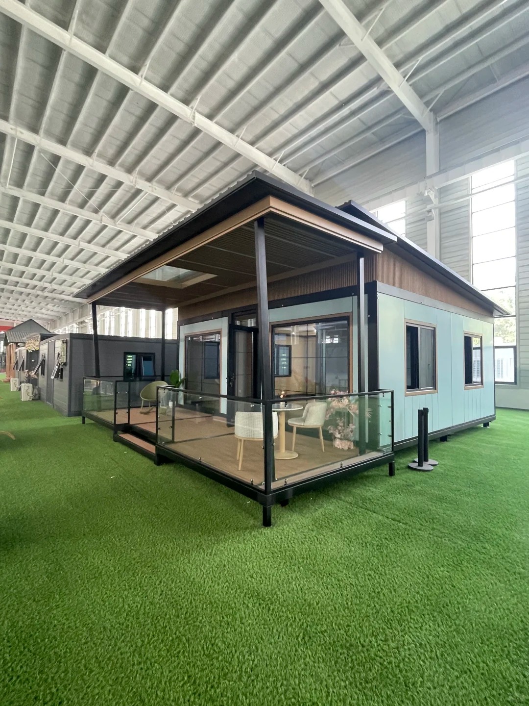 The appeal lies in their versatility. Envision a container apartment perched on a rooftop, its expansive glass-panelled facade inviting the golden hues of sunset to dance across minimalist interiors. High ceilings and open layouts create an airy sanctuary, where sleek kitchen islands and plush lounging areas invite gatherings. Our designs incorporate natural light through large windows, fostering a seamless blend with the outdoors, much like the chic glass railings on our porches that frame views of manicured green lawns. For those drawn to affordable container living, these homes offer quick deployment—assembled in days, not months—slashing costs without compromising on style or quality.