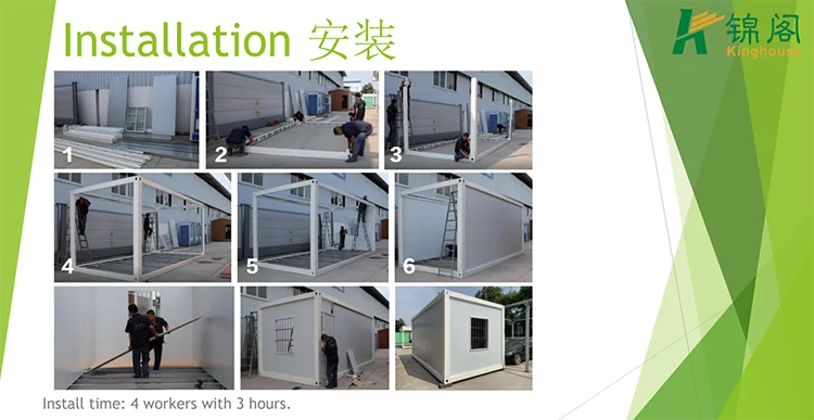 Detachable Container house can be connected by bolts, with easy installation and fast transportation. Life span is about 15 years.